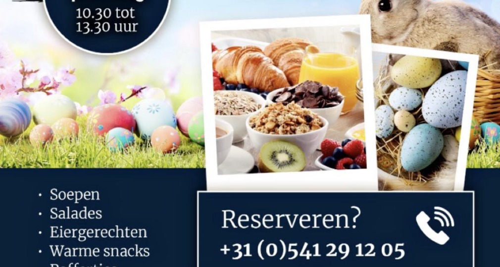Op 1e en 2e (5 en 6 april)paasdag hebben zij een traditionele uitgebreide paasbrunch met heerlijke gerechten met een Twents tintje
