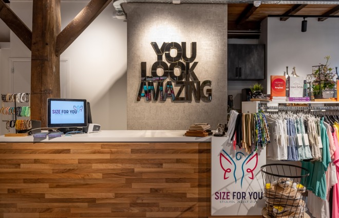 Ook leuk om te weten: om de look compleet te maken kun je bij Size For You naast kleding ook terecht voor schoenen, tassen en leuke accessoires. Daarnaast is er ook nog een kleine hoekje met allerlei woonaccessoires.