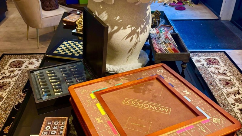 Eén van de absolute eyecatchers: “Waar vakmanschap en spelplezier samenkomen.”Een limited edition Amerikaanse Monopoly, uitgevoerd met een verfijnde afwerking van wortelnotenhout. Een spelavond met een Amerikaanse touch – een droom voor verzamelaars en liefhebbers van tijdloos design.