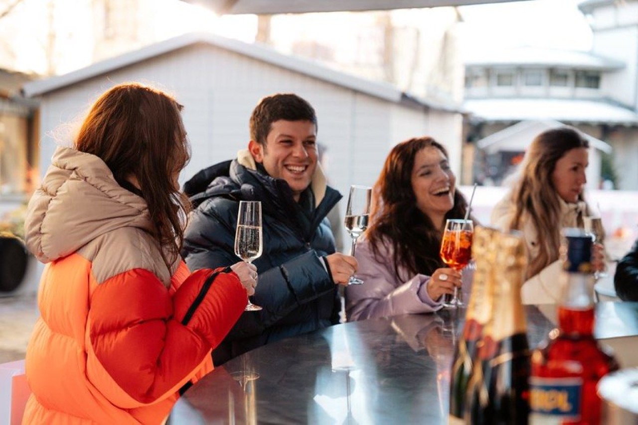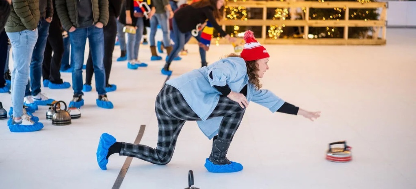 Onder een ruime tent schittert de duurzame Glice-ijsbaan van maar liefst 200 m². Overdag kan er vrij geschaatst worden en in de avonduren wordt de baan geprepareerd voor spannende curlingwedstrijden. De horeca wordt verzorgd vanuit een gezellige Schirmbar, waardoor de winterse sfeer compleet is.