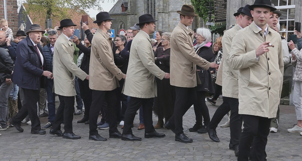 Geleidelijk sluit de hele gemeenschap – jong en oud – zich aan, waardoor een lange, slingerende keten van mensen ontstaat. Al zingend trekken ze door de straatjes en steegjes van Ootmarsum, langs stiepels en karakteristieke gebouwen. De tocht eindigt op de Markt, waar beide paasliederen nog één keer worden gezongen.