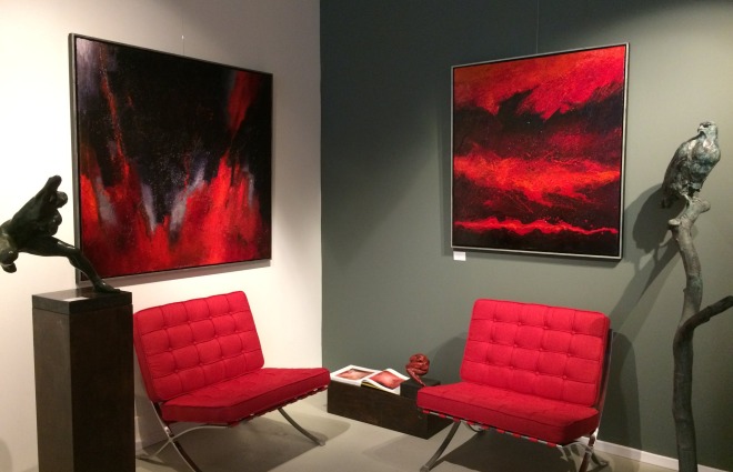 Jan schildert vooral abstracte doeken en laat zich daarbij meestal inspireren door muziek. De horizon is weer teruggekeerd in zijn laatste serie ‘Fantasy Landscapes’.