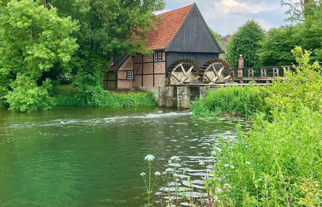 Het Duitse plaatsje Lage was lange tijd een 'heerlijkheid' een zelfstandig staatje met een eigen rechtspraak. Bekijk de oude ruïne van de burcht, watermolen en de eikenallee.